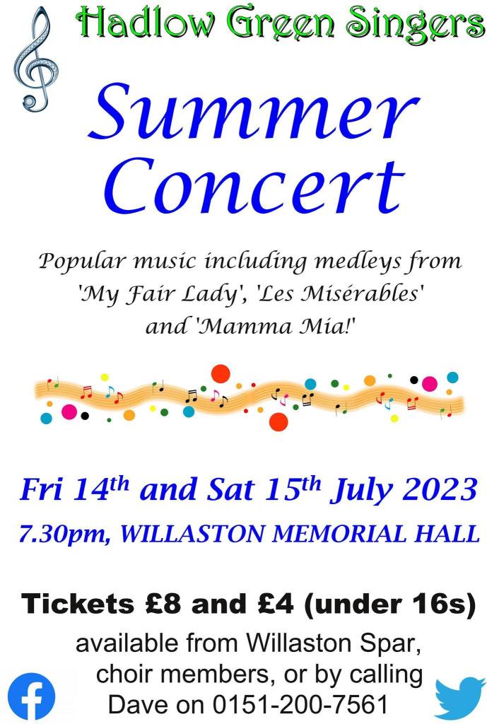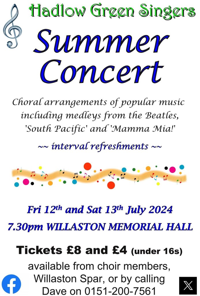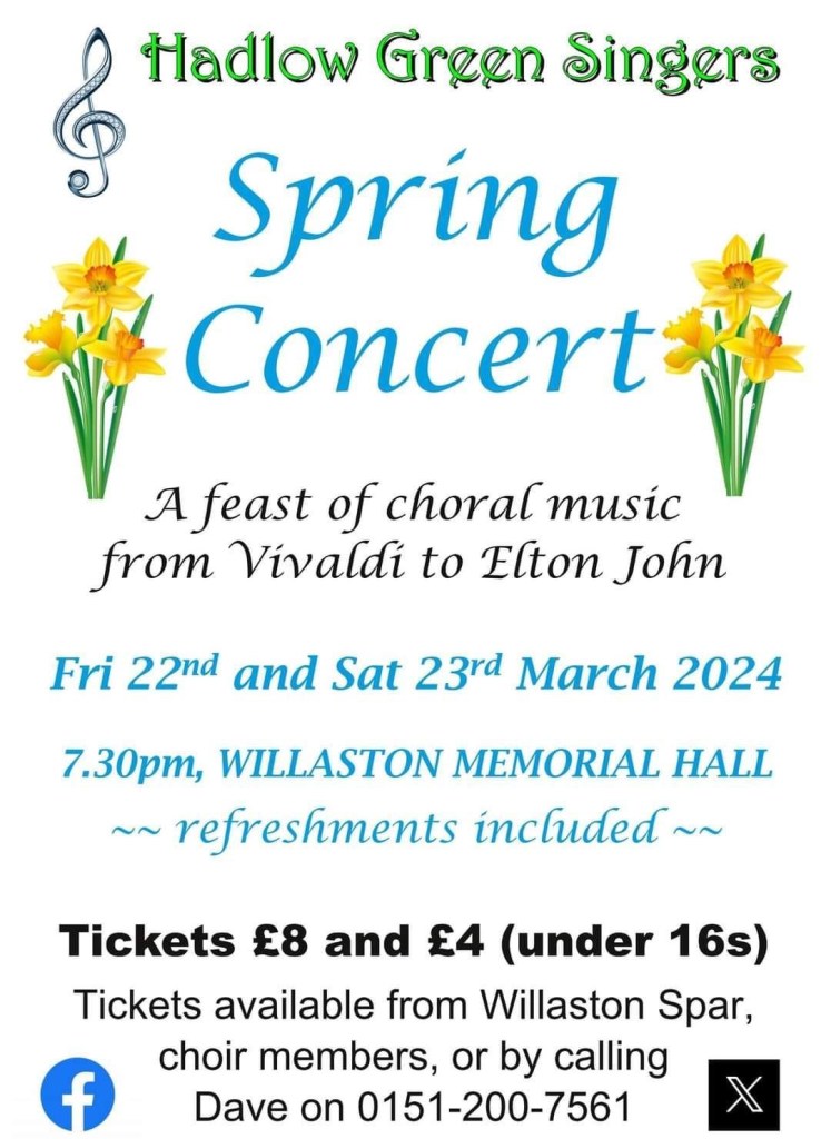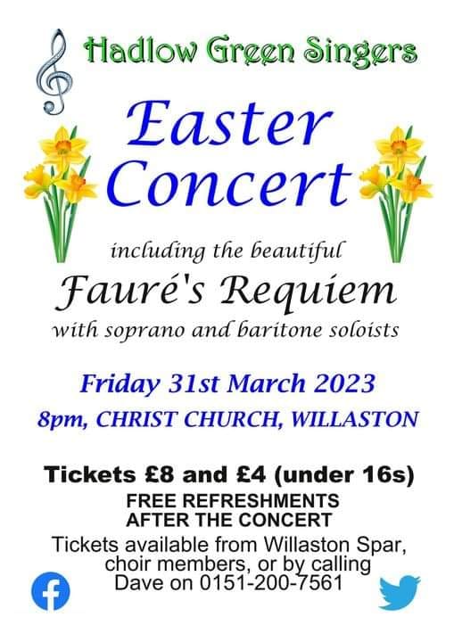 We are a mixed ages Choir who sing a large variety of pieces, from Fauré’s Requiem to ABBA. We rehearse once a week during term time on a Thursday evening in Willaston Memorial Hall. If you have a passion for singing and are keen and willing, come and try us out! No auditions are required. If you are interested in joining us, please fill out the contact form below and someone will be in touch.